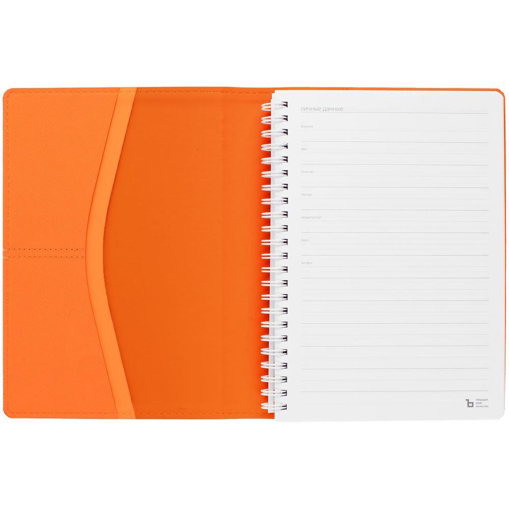 Твердая обложка с кармашками и съемный блок на пружине — для тех, кто ценит удобство и практичность.Ежедневник с блоком на пружине в твердой обложке, выполнен из материалов Nice Touch, оранжевый ОО, Soft Touch Pearl и Soft Touch оранжевый.