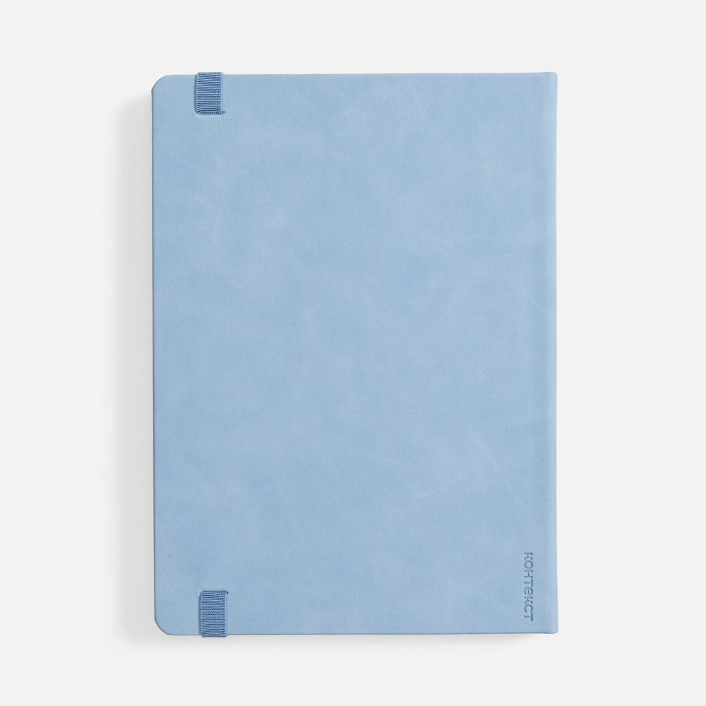 Ежедневник с твердой обложкой, выполнен из материала Nubuck Touch, голубой JJ, дополнен ляссе светло-голубого цвета.