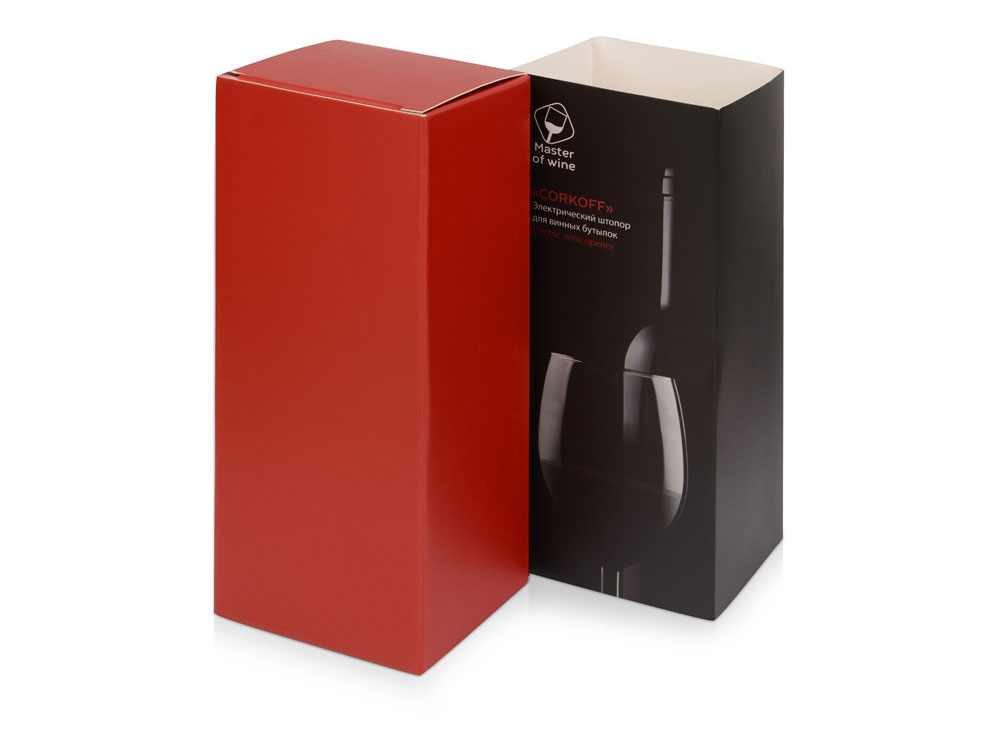 Электрический штопор – незаменимый подарок для ценителей вина. Его корпус выполнен из пластика с тактильно приятным покрытием soft touch. На штопор можно нанести логотип компании. В комплектации: штопор, подставка, инструкция по использованию. Батарейки в комплект не входят.