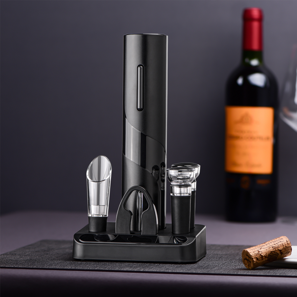 Винный набор Бургундия - отличный подарок! Все, что вам нужно для подачи ваших любимых вин, собрано в этом наборе. Набор включает в себя: - электрический штопор (работает от батареек типа АА, в комплект не входят) - резак для срезания фольги - аэратор (служит для аэрации и насыщения напитка кислородом) - две пробки (для закупоривания открытой бутылки) - специальная подставка-органайзер.- Виды нанесений: Тампопечать большая, УФ-печать А2