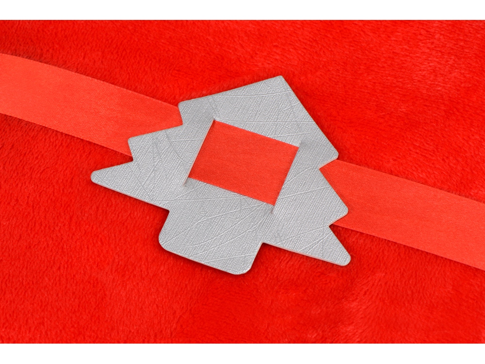 Отличная идея для персонализации новогодних подарков и пледов. С помощью специальных прорезей (2,8 см) по бокам бирка надежно крепится с ленте, которой перевязан плед, и выглядит, как новогодняя игрушка. -