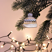 Ёлочная игрушка Шапочка (белый с золотым )