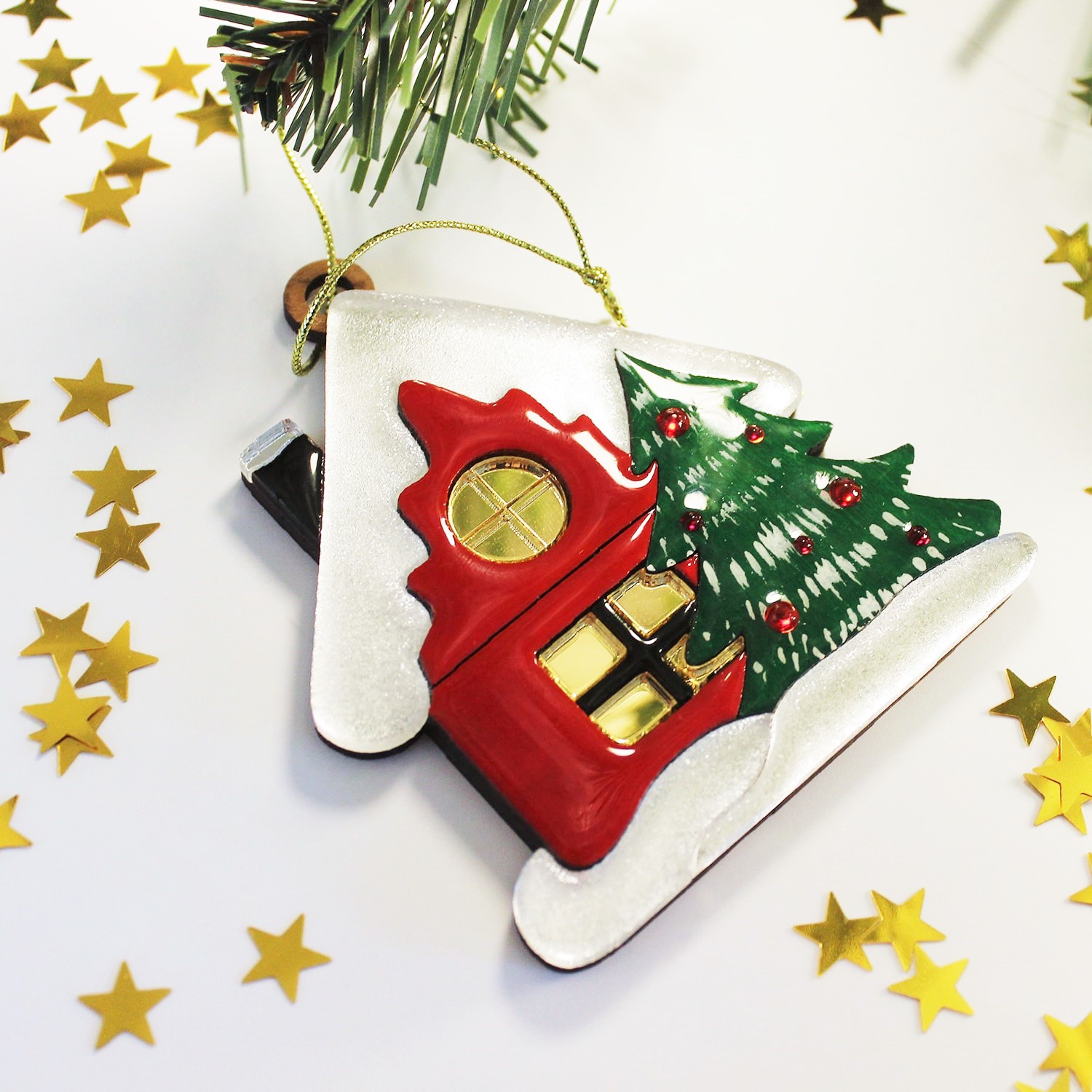 Елочная игрушка «Домик» — новогоднее украшение из коллекции "Русские сезоны", сделанное вручную российскими мастерами.