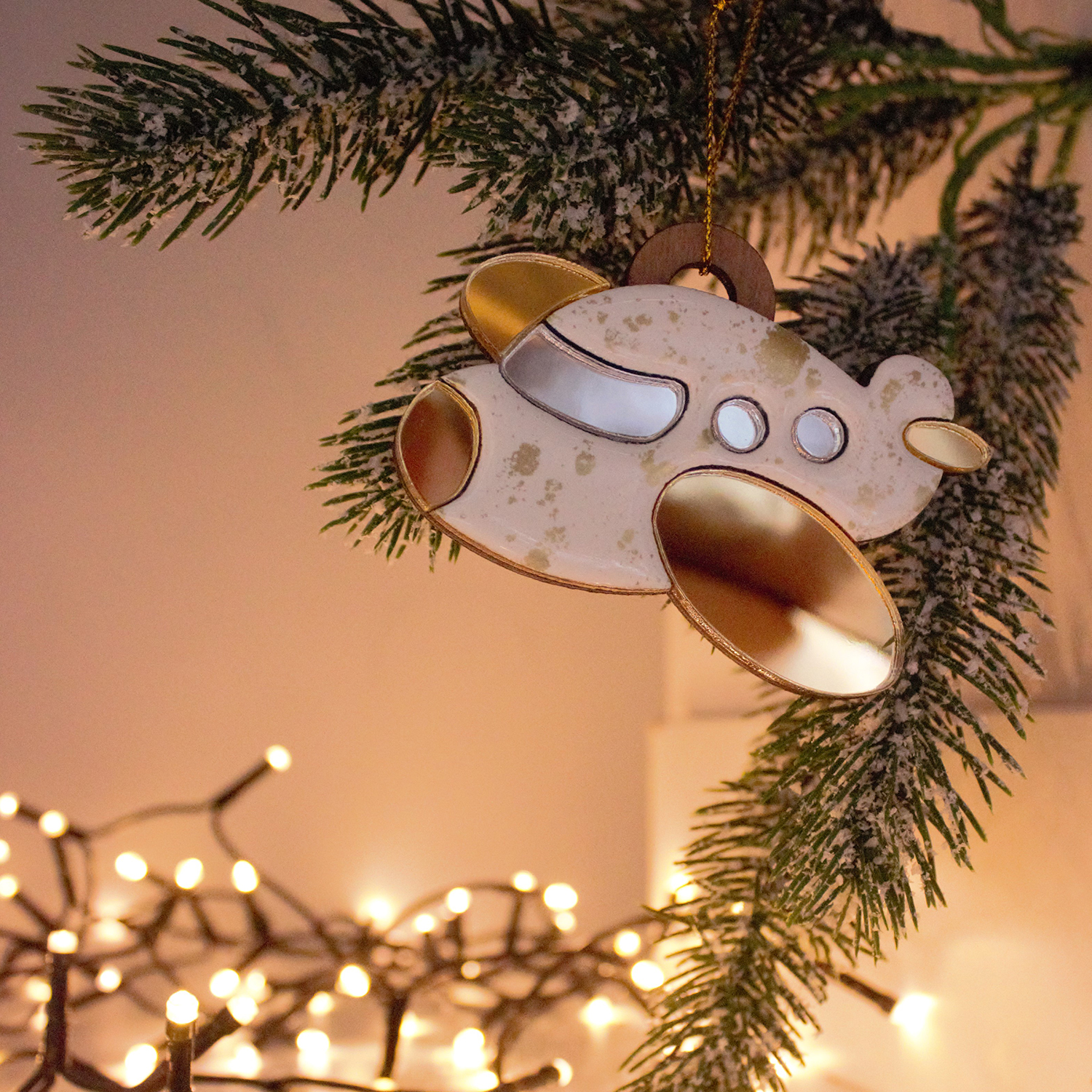 Ёлочная игрушка Самолетик (белый с золотым )
