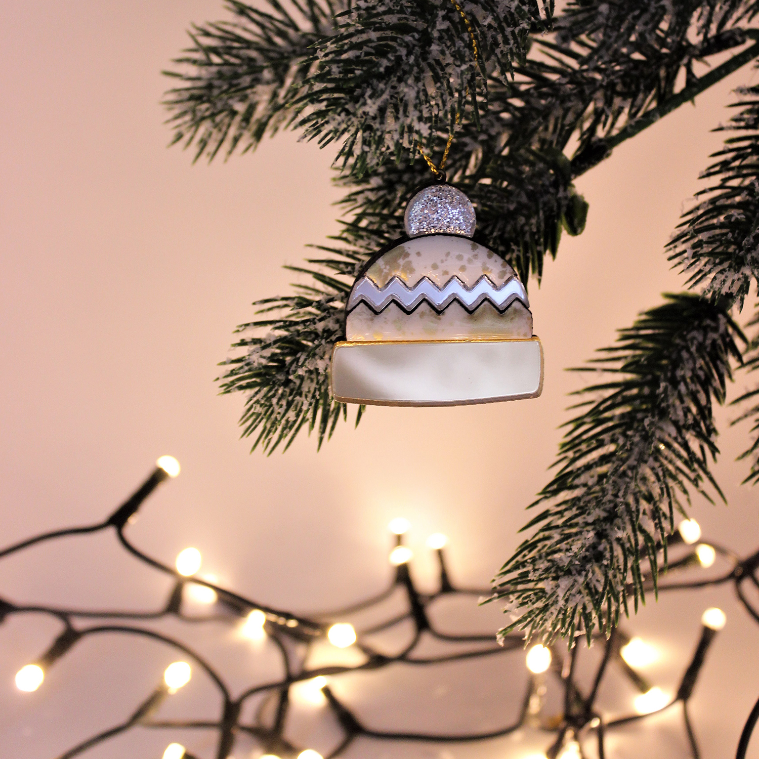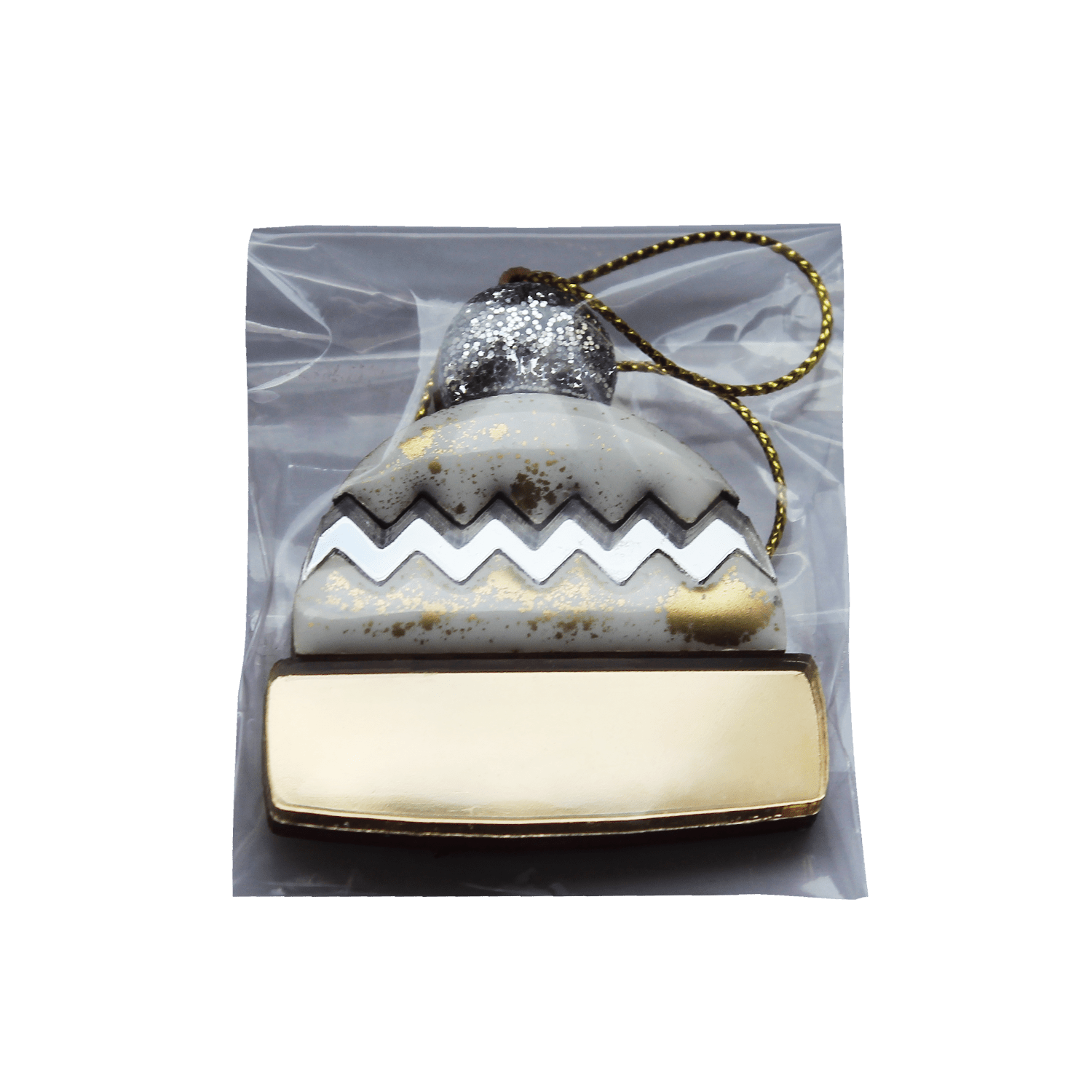 Ёлочная игрушка Шапочка (белый с золотым )