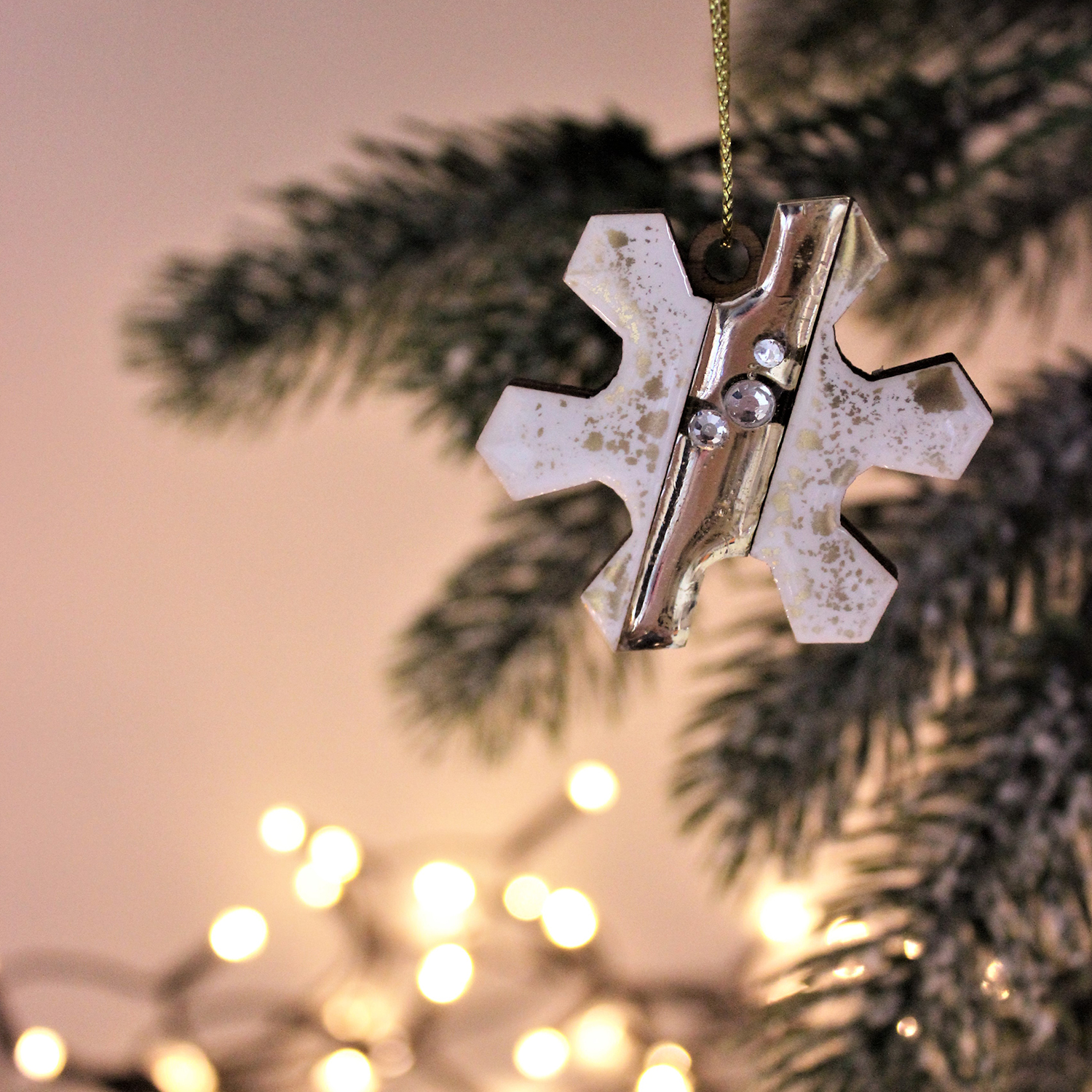 Ёлочная игрушка Снежинка (белый с золотым )