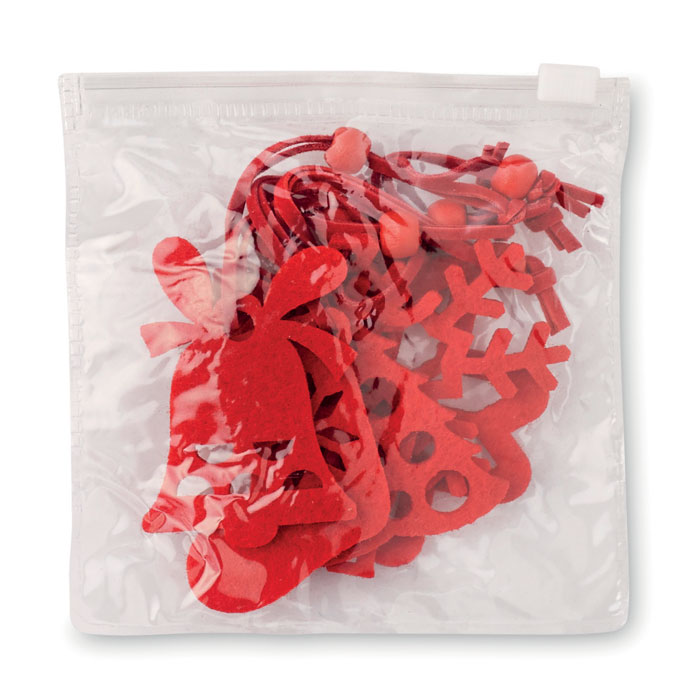 Набор из 6 фетровых новогодних подвесок: елочка, снежинка, сапожок, колокольчик, цветок и олень. -