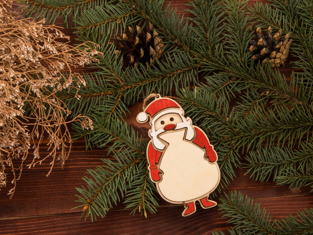 Елочная экоигрушка в виде одного из главных символов нового года - Дед Мороза. Этот атмосферный и праздничный сувенир изготовлен из березовой фанеры и украшен тонировкой красного цвета. Небольшой новогодний презент отлично укладывается в концепцию экоподарка, при производстве и тонировании используются натуральные материалы и красители. -
