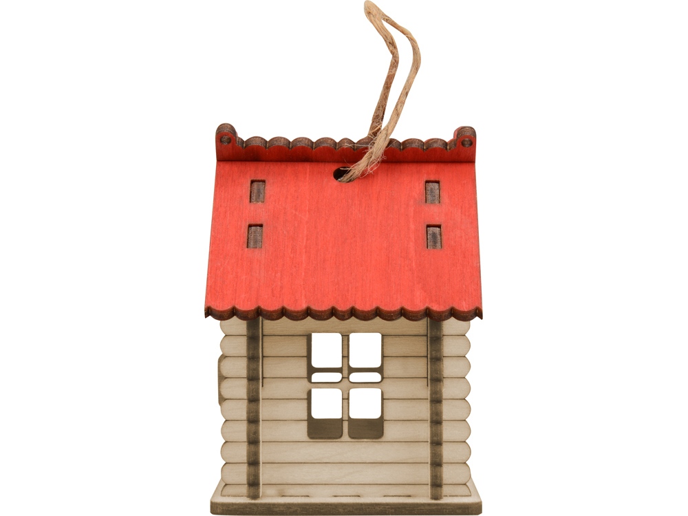 Небольшая елочная игрушка в виде лесной избушки. Дверца избушки открывается, внутрь можно положить небольшой сувенир, конфету или маленький светодиодный фонарик. Избушка с небольшим светящимся огоньком отлично украсит ваше новогоднее дерево, а несколько таких игрушек на елке с легкостью заменят новогоднюю гирлянду. -