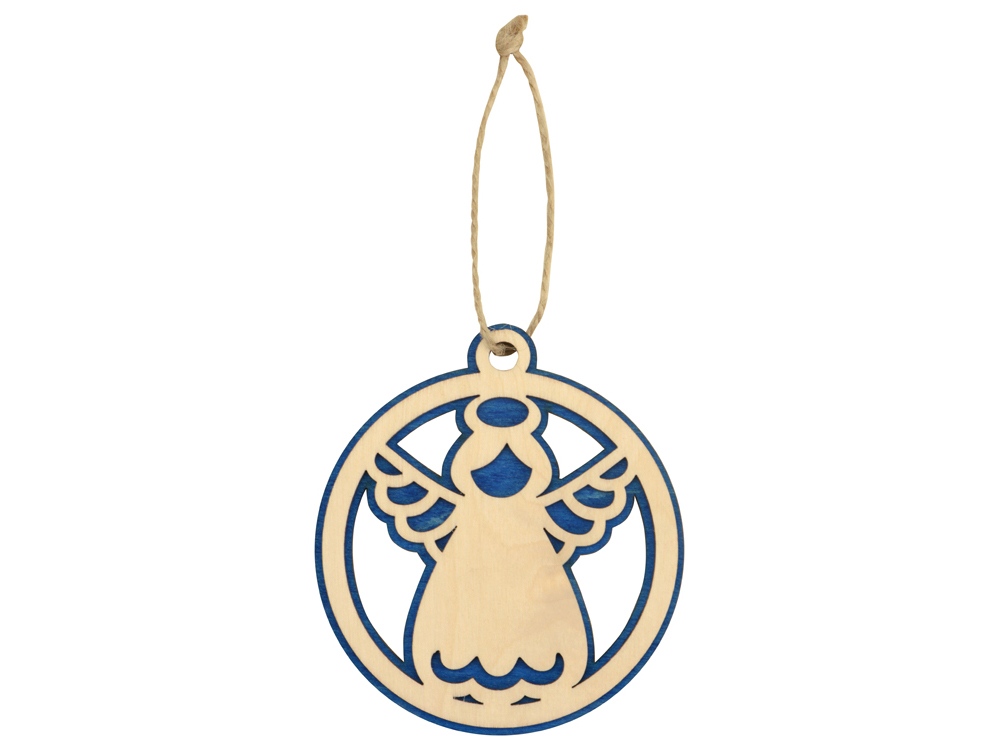 Елочная игрушка в виде главного символа праздника. новогоднего ангела – атмосферный и праздничный сувенир. Подвеска изготовлена из березовой фанеры и украшена тонировкой синего цвета, которая подчеркивает объемность игрушки и оттеняет текстуру неокрашенной части подвески. На одеждах ангела можно разместить ваши благопожелания или логотип. -