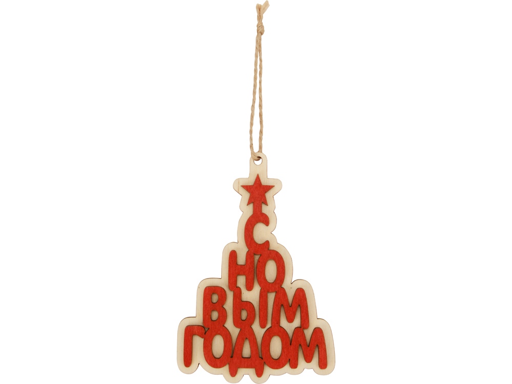 Оригинальное елочное украшение в виде поздравления С новым годом!. Подвеска выполнена из березовой фанеры и тонирована в красный цвет. -