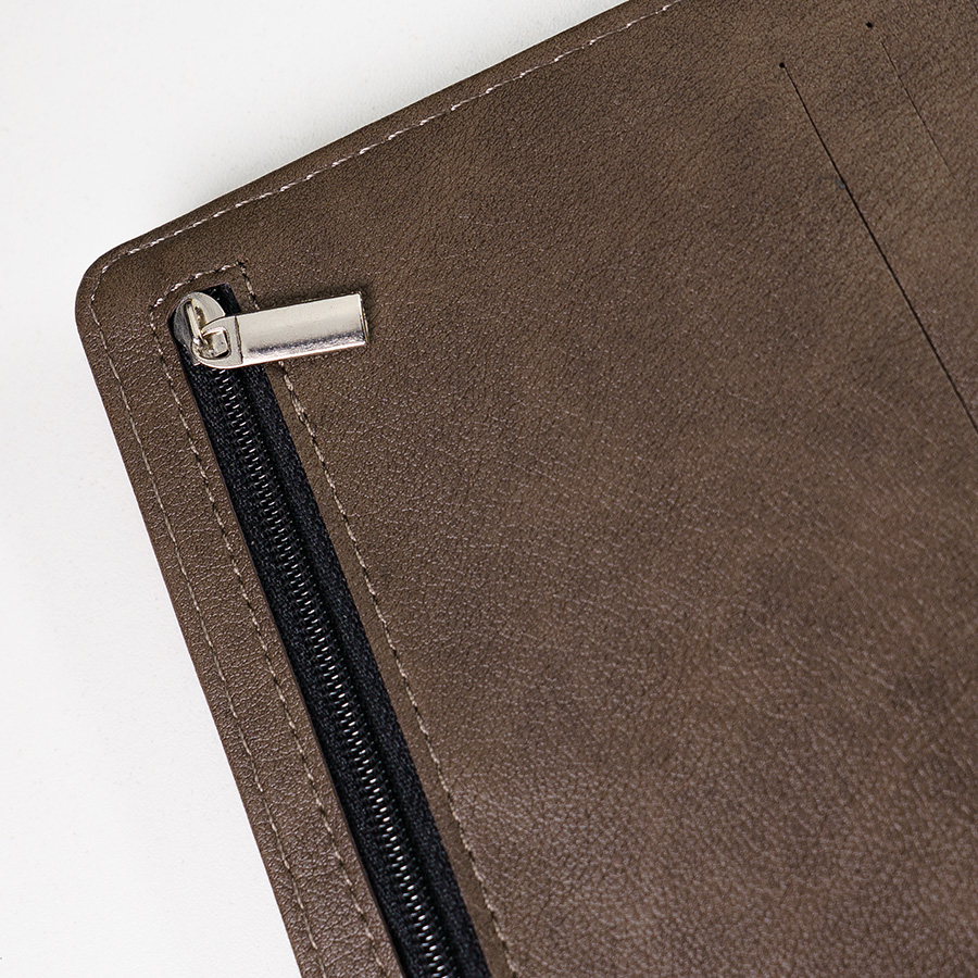 Цвет обложки, близкий к пантону 411С Размер обложки 165*225 мм Размер блока 155*215 мм Переплет твердый, крепление на кольцах Обложка PU Pinto с магнитным клапаном Блок недатированный, в линейку Прямые углы, двухкрасочная печать Бумага кремовая, плотность 70г м2 320 страниц, пенхолдер Карманы для карт, отделение на молнии -