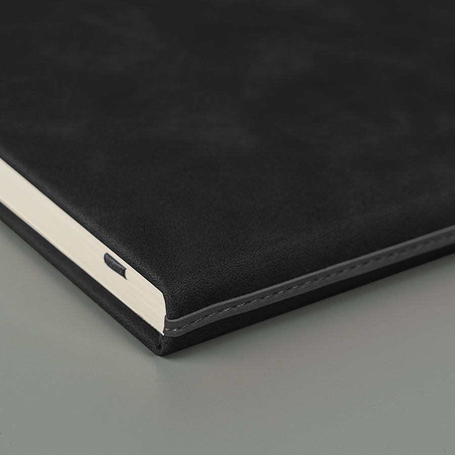 Ежедневник недатированный Muse,черный, формат А5, с декоративной серой полосой, блок в линейку