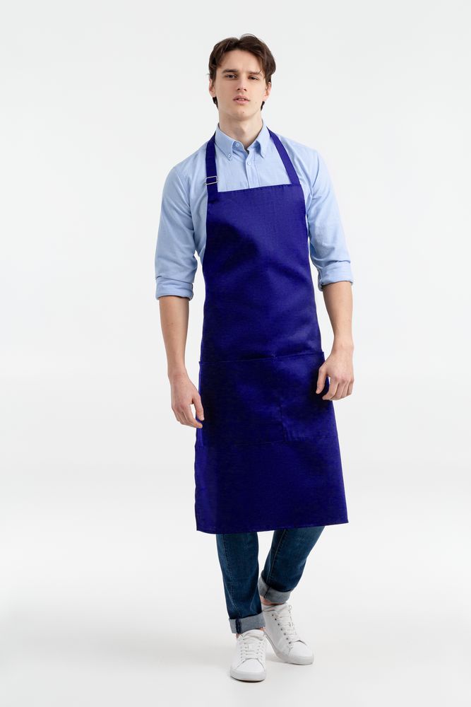 Фартук с регулируемой лямкой и двумя карманами. Глубина карманов 24,5 см.