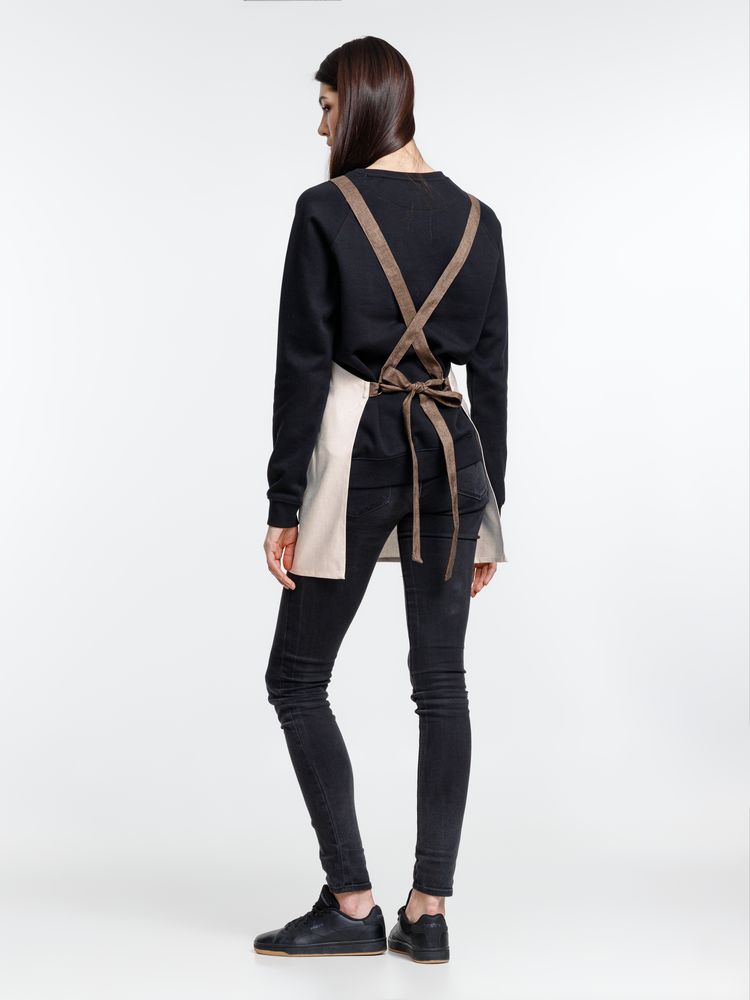 Износостойкая ткань, имитирующая лен, обработана пропиткой от грязи и воды, что делает ее применение для кухни и дома практичным, а уход — легким.- Фартук с контрастной отделкой и перекрестными регулируемыми лямками