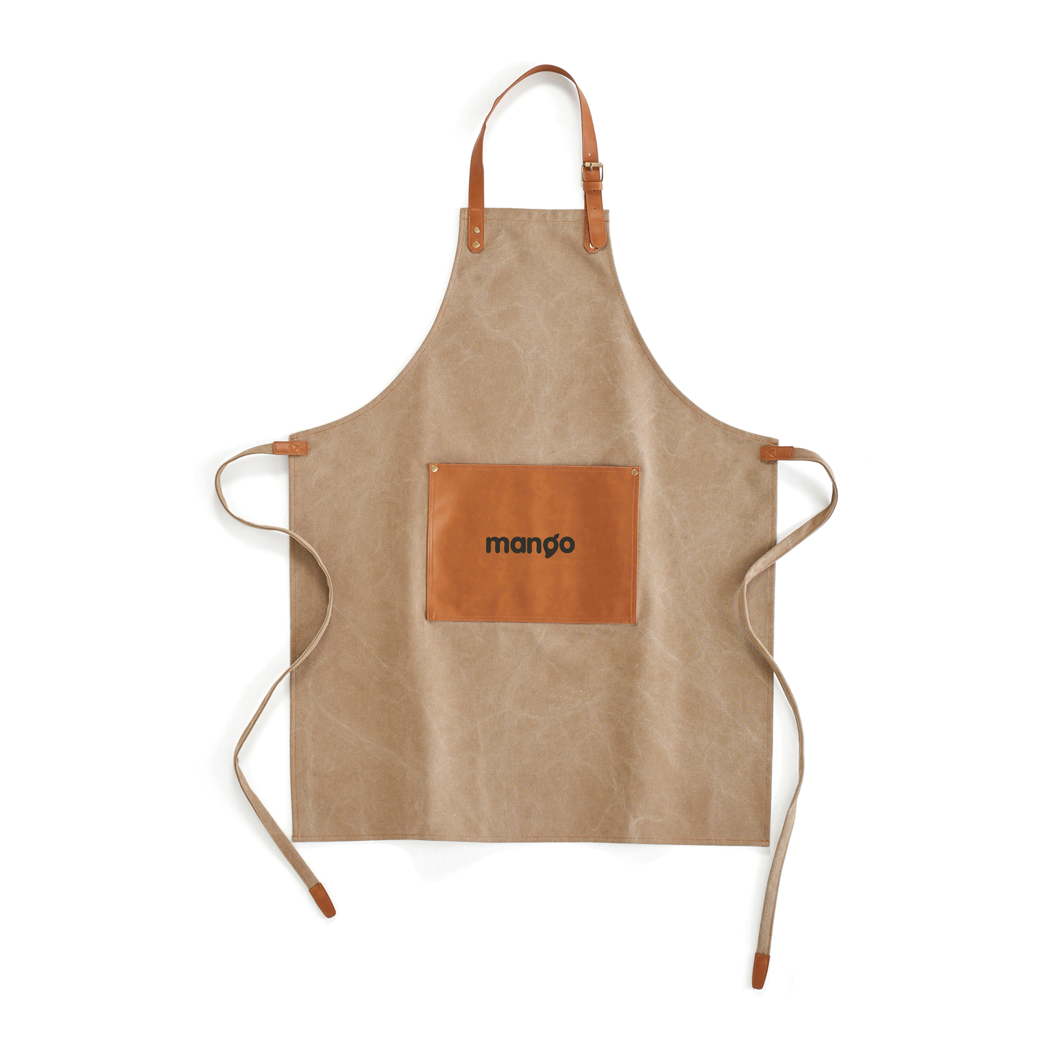 Прочный фартук из вареного канваса плотностью 500 г/м2 декорирован деталями под натуральную кожу. Благодаря текстуре ткани со временем изделие становится только лучше.