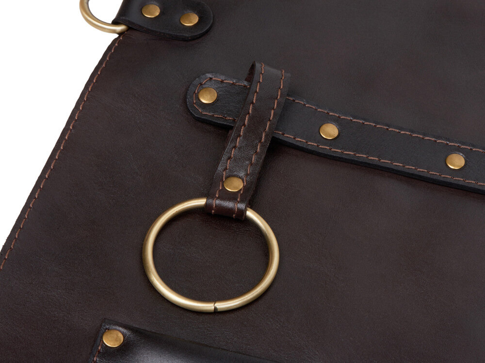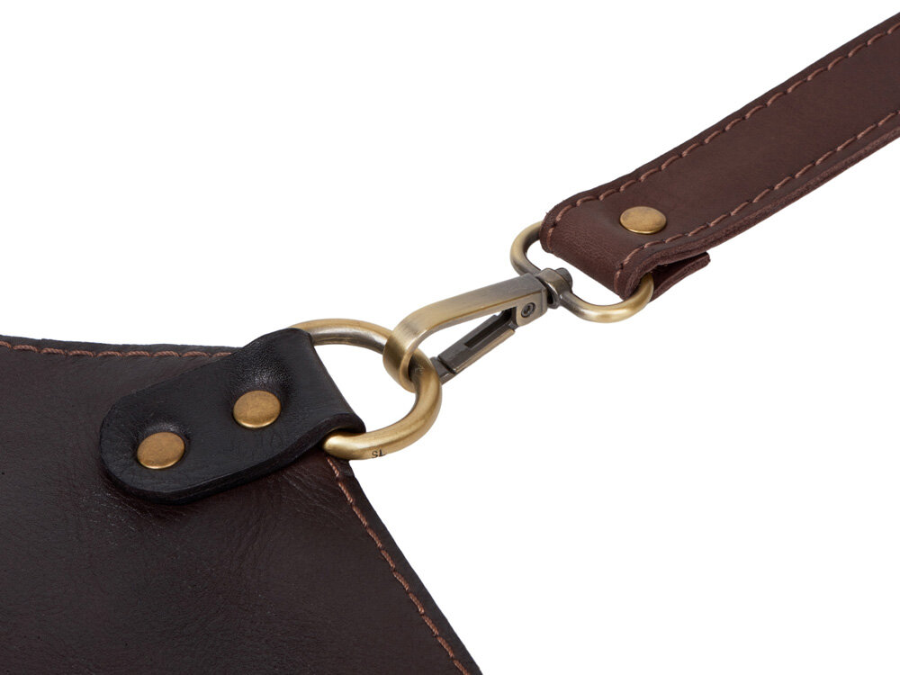 - Цвет: темно-коричневый фартук с темно-коричневыми ремнями.