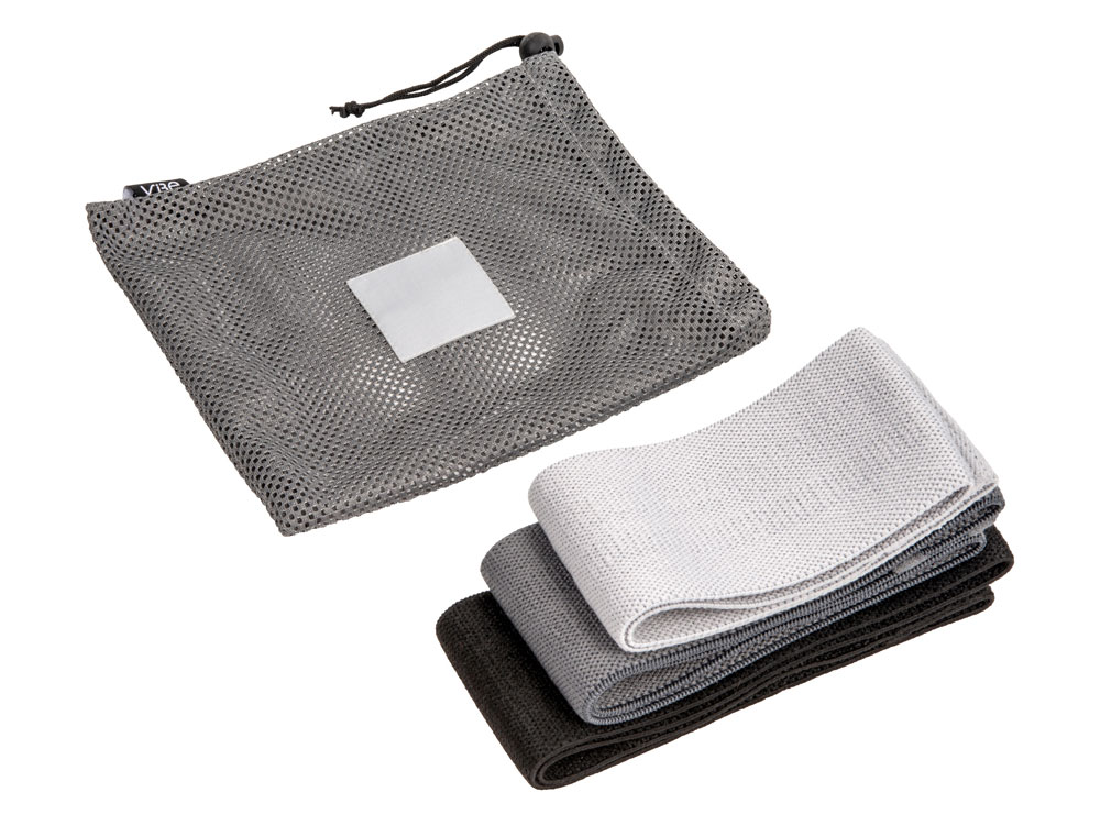 Сет резинок для фитнеса от Vibe упакован в мешочек из сетчатой синтетической ткани, которая обеспечивает циркуляцию воздуха, благодаря которой ткань инвентаря быстрее просохнет после интенсивной тренировки.