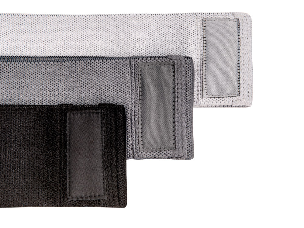 Резинки выполнены из ткани, что обеспечивает не только долговечность, но и позволяет стирать их при температуре 20 градусов как в стиральной машине, так и на руках. Ширина резинок обеспечивает комфорт во время занятий, чем шире резинка — тем меньше она скручивается. С внутренней стороны каждая резинка прошита силиконовой вставкой против скольжения по время тренировки.