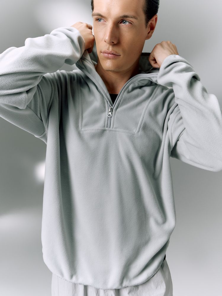 Флисовый анорак унисекс с капюшоном.- Спущенная линия плеча