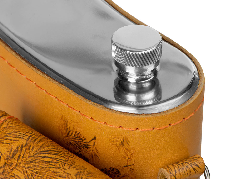 Фляга 2л в оплетке из натуральной кожи с нанесением рисунка методом художественного выжигания.