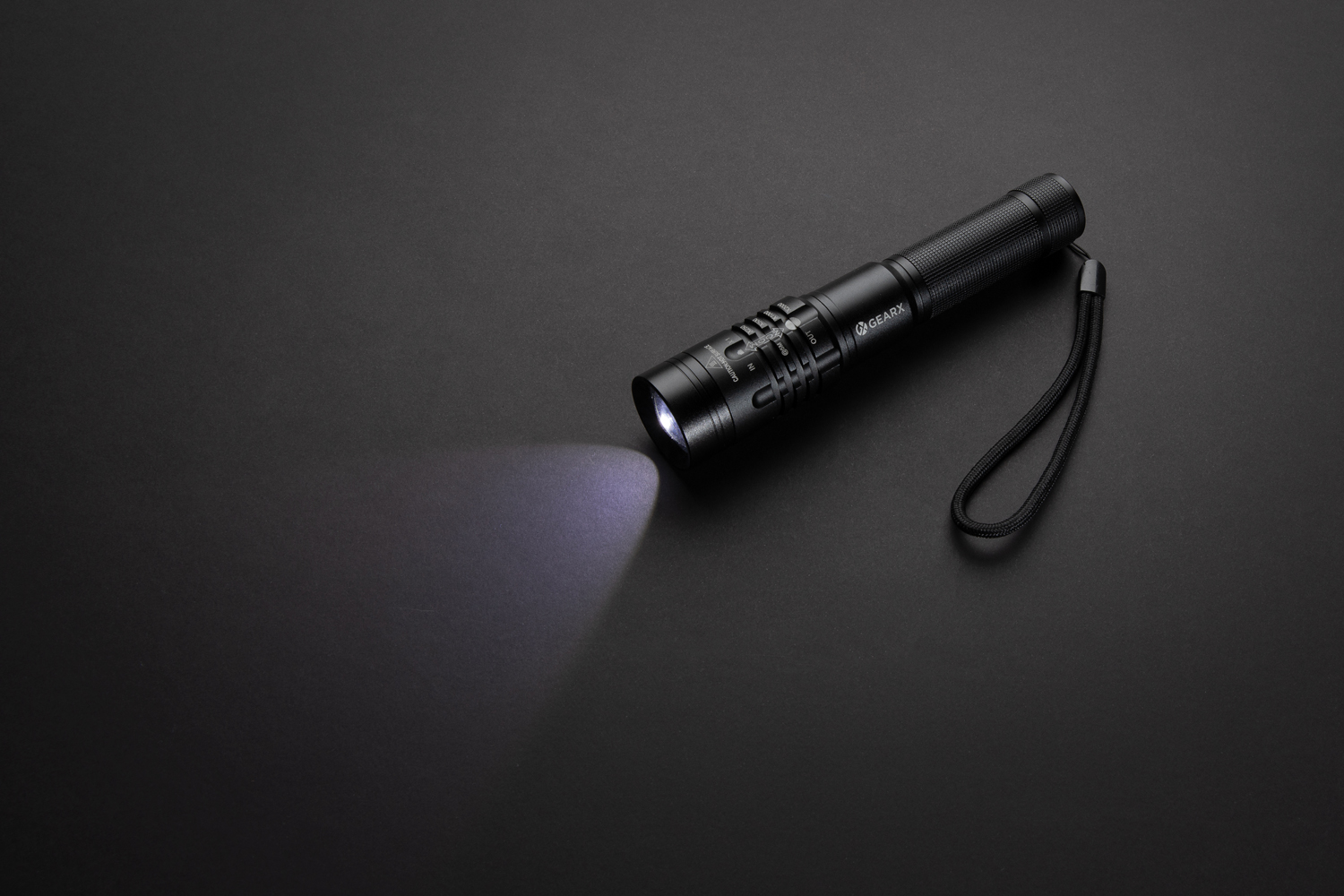 Функциональность, производительность и дизайн сочетаются в этом фонаре Gear X с аккумулятором, который можно заряжать снова и снова. Корпус из высококачественного алюминиевого сплава комфортно ложится в руку. Благодаря классу защиты IP4 подходит для использования на улице даже в ненастную погоду. Мощная лампа обеспечит вам яркость до 1000 люмен и длину луча до 500 метров. Фонарь оснащен аккумулятором, который легко подзарядить при помощи USB-кабеля. 5 режимов освещения, включая сигнал SOS. Аккумулятора емкостью 2000 мАч достаточно, чтобы использовать фонарь до 4 часов без подзарядки.