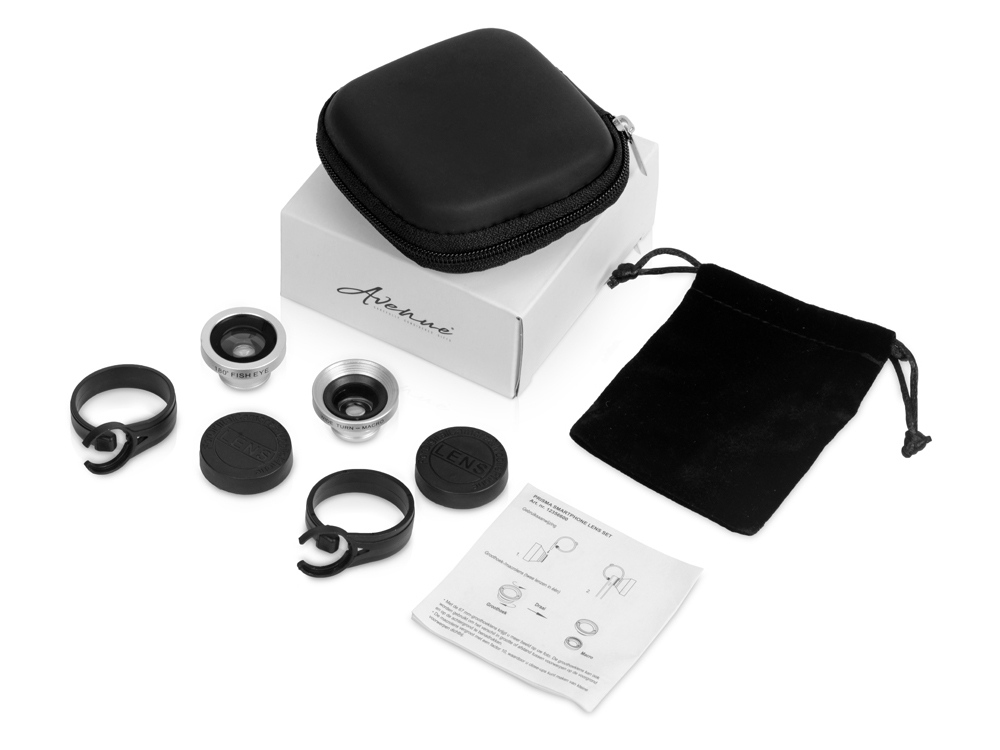 Делайте более интересные фотографии своим смартфоном при помощи этого удобного набора объективов со специальными эффектами. Просто установите широкоугольный объектив или объектив рыбий глаз или макро на свой смартфон, чтобы делать фотографии с необходимыми эффектами. Взгляните на мир немного по-другому! Предлагается в подарочной коробке Avenue (размер: 8,5 x 8,5 x 3,5 см). -