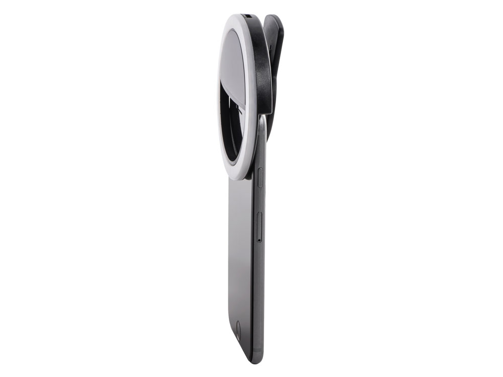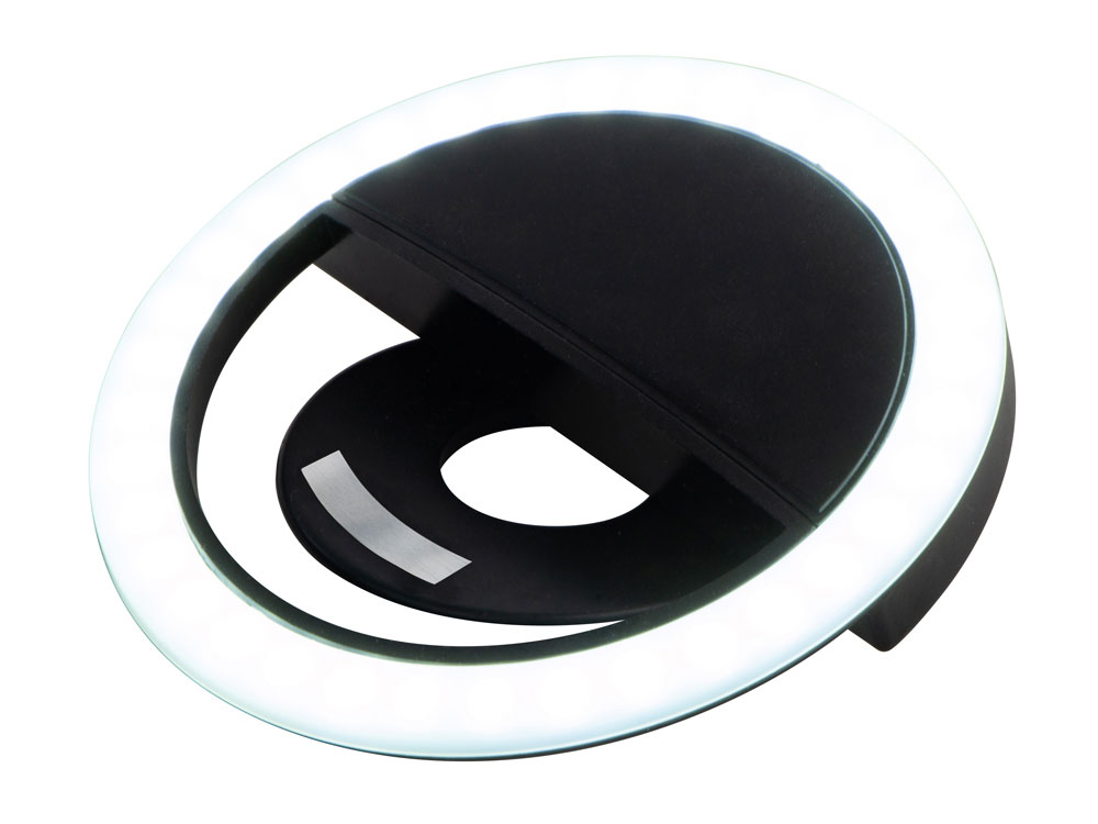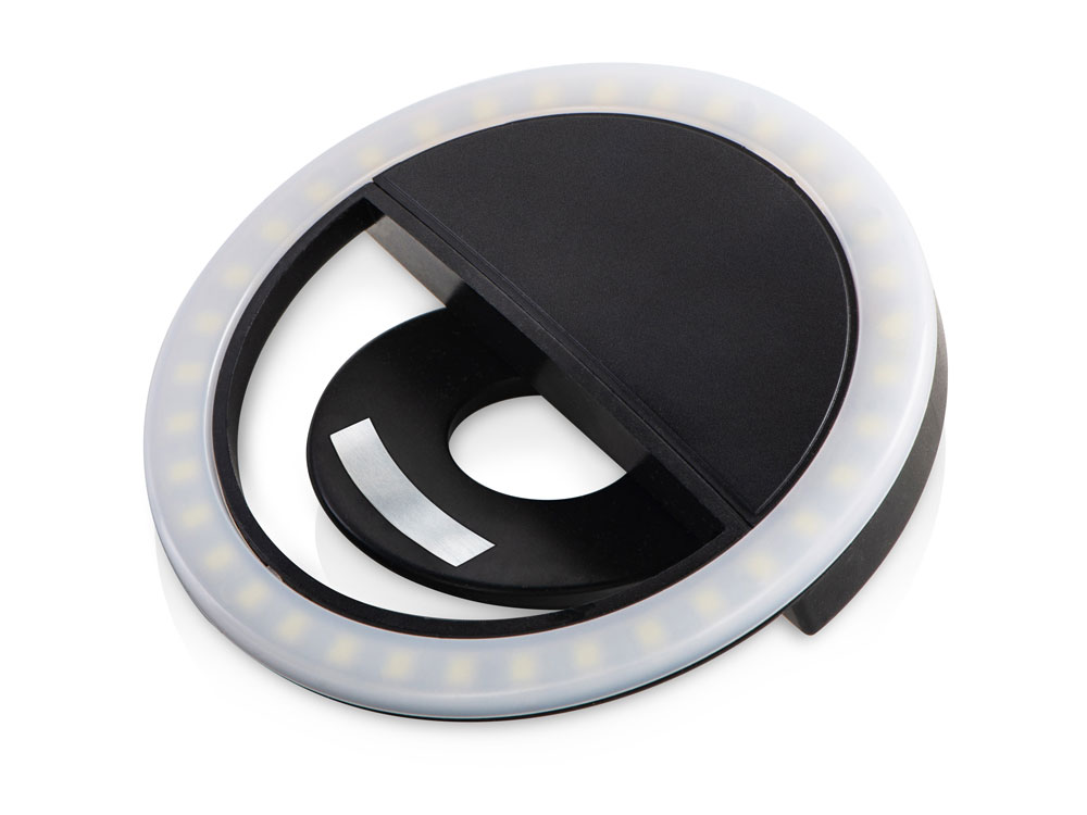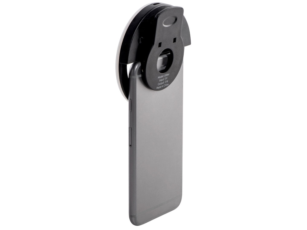 Световое кольцо Glitter делает ваши селфи- фото и видео более качественными за счет дополнительного освещения. Подсветка представлена нейтральным белым цветом от 48 светодиодов с 3 режимами яркости. Время непрерывного свечения - до 2 часов. Можно быстро зарядить от любого пауэрбэнка по micro USB. Благодаря удобной конструкции селфи-кольцо устанавливается и снимается за секунду. На корпусе имеются силиконовые защитные полоски, чтобы исключить даже малейшие повреждения экрану смартфона.