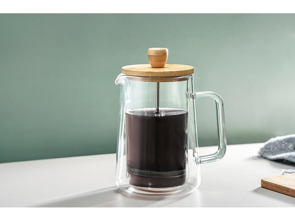 Френч-пресс с двойными стенками не только удобно использовать, но и приятно держать в руках. Он станет стильным элементом вашей кухни и подарит незабываемый вкус свежезаваренного напитка каждый день!
