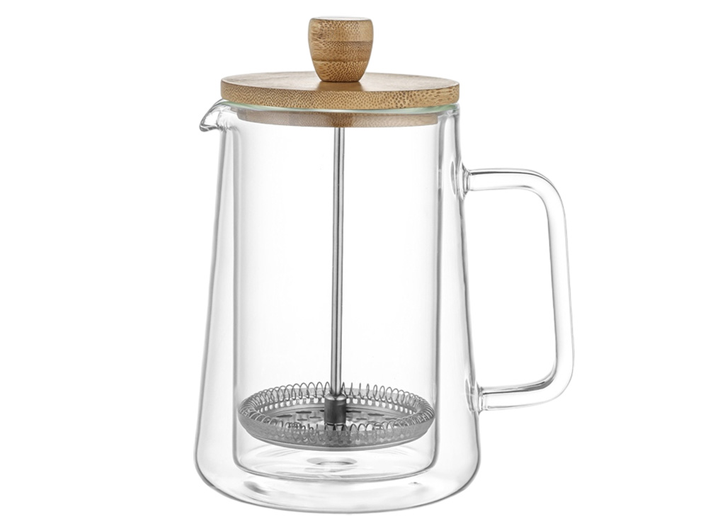 - Бамбуковая крышка – натуральный, экологичный материал с красивой текстурой, который гармонично дополняет стиль френч-пресса.