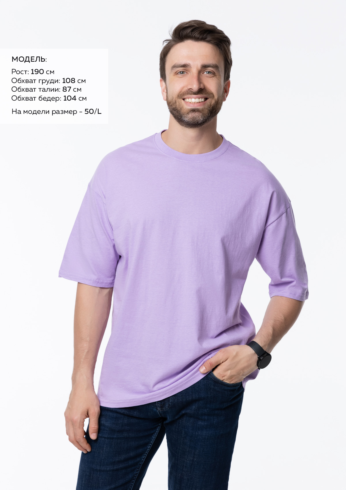 Размер мужской футболки: 50/L. Параметры модели: рост 190 см.; обхват груди 108 см.; обхват талии 87 см.; обхват бедер 104 см.