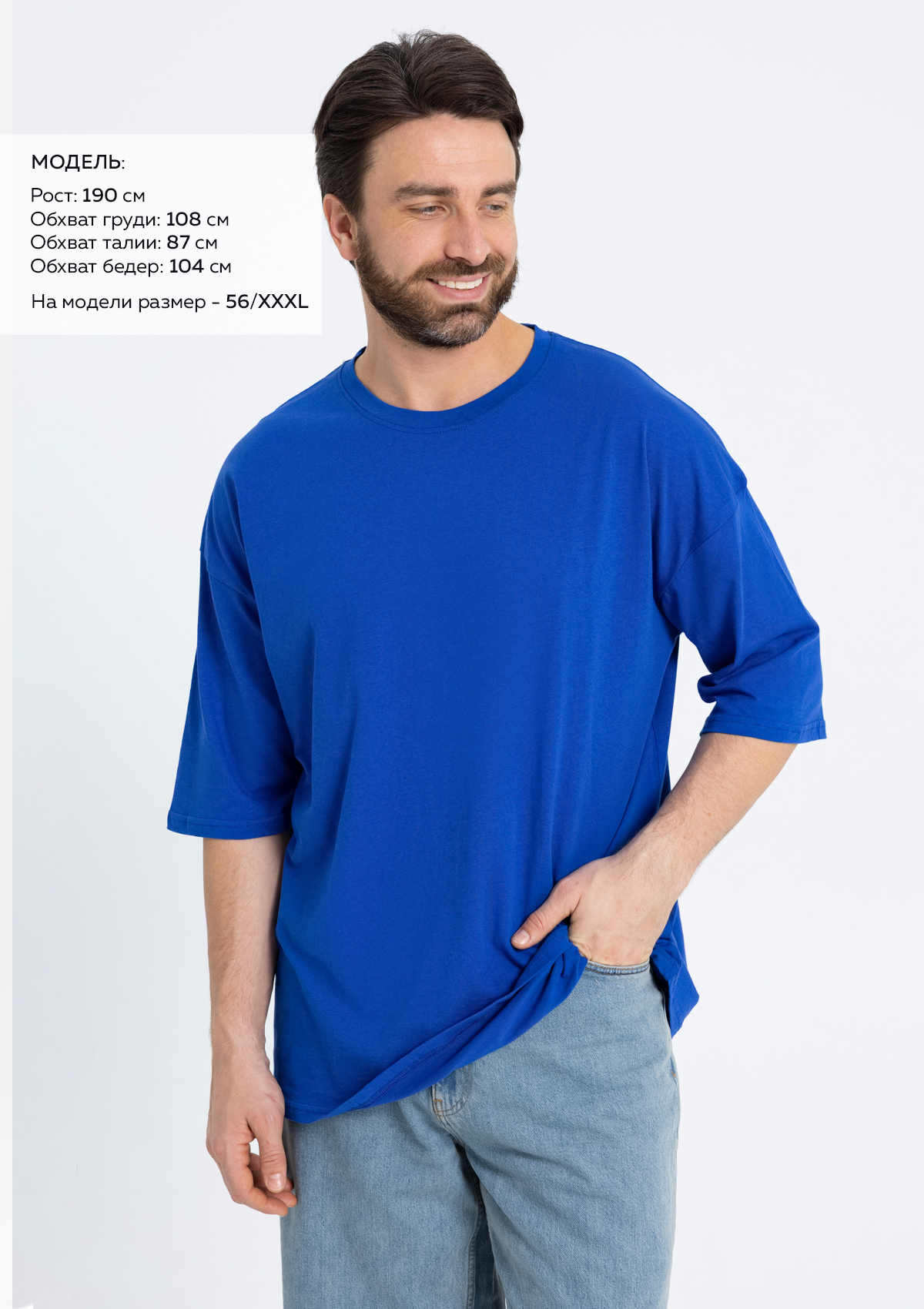 Размер мужской футболки: 50/L. Параметры модели: рост 190 см.; обхват груди 108 см.; обхват талии 87 см.; обхват бедер 104 см. -