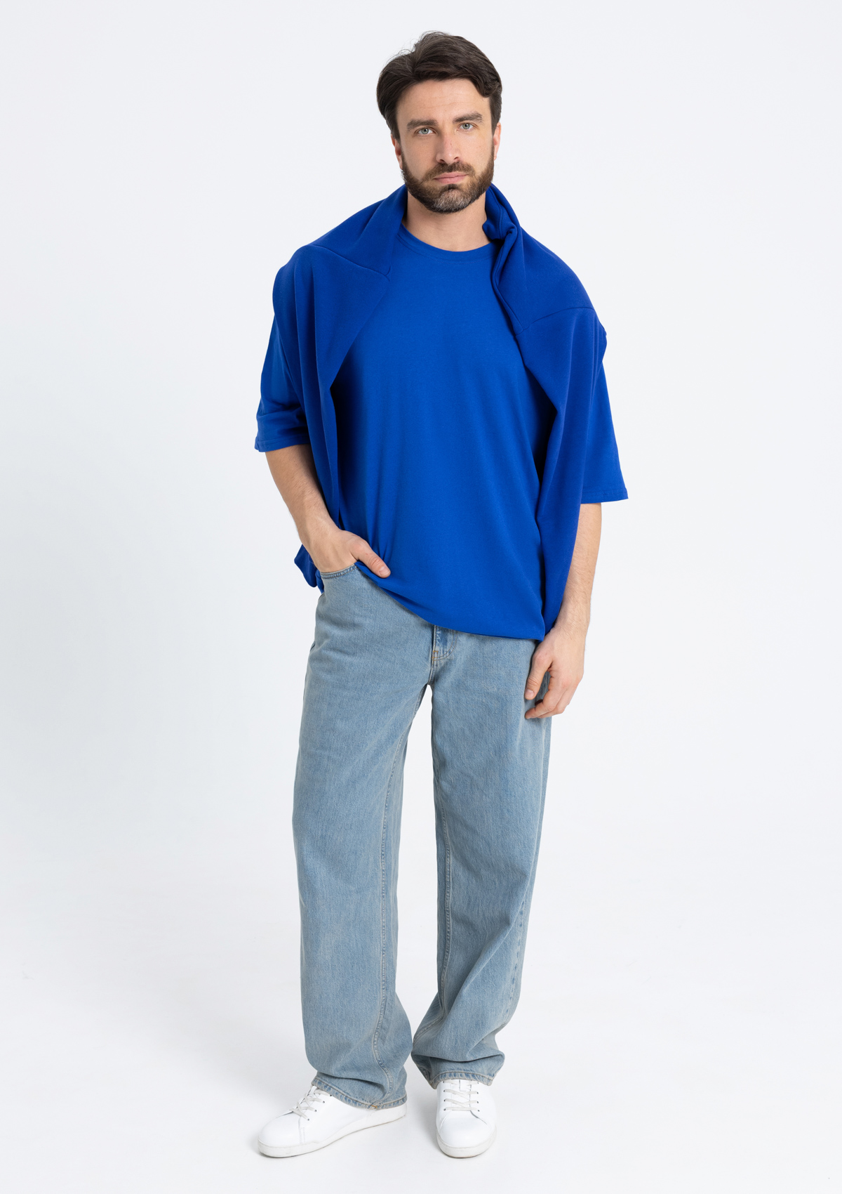 Свободная футболка силуэта-oversize с округлым воротом и спущенной линией плеча. Универсальная модель идеально впишется как в мужской, так и в женский гардероб.