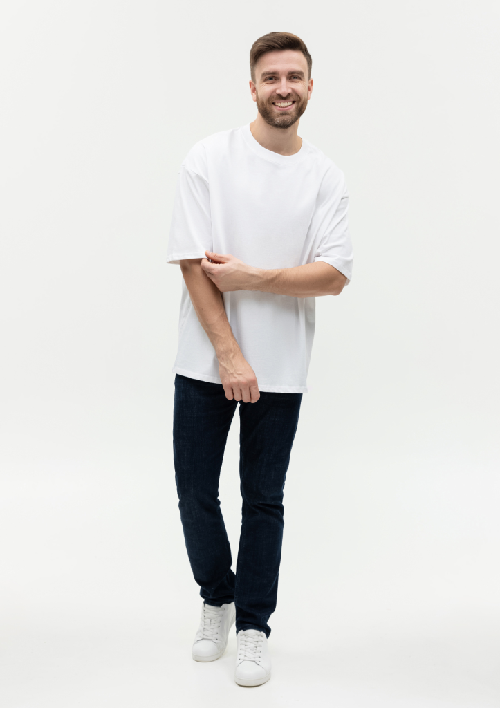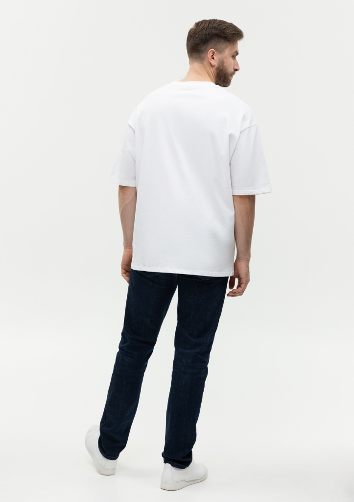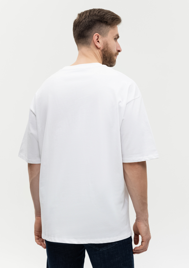 Универсальная футболка силуэта-oversize с округлым воротом и спущенной линией плеча.
