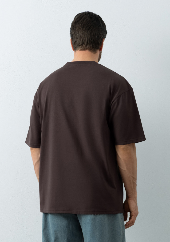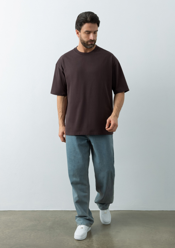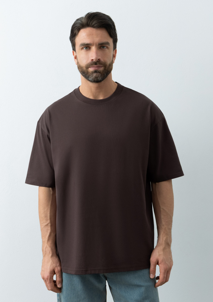 Универсальная футболка силуэта-oversize с округлым воротом и спущенной линией плеча.