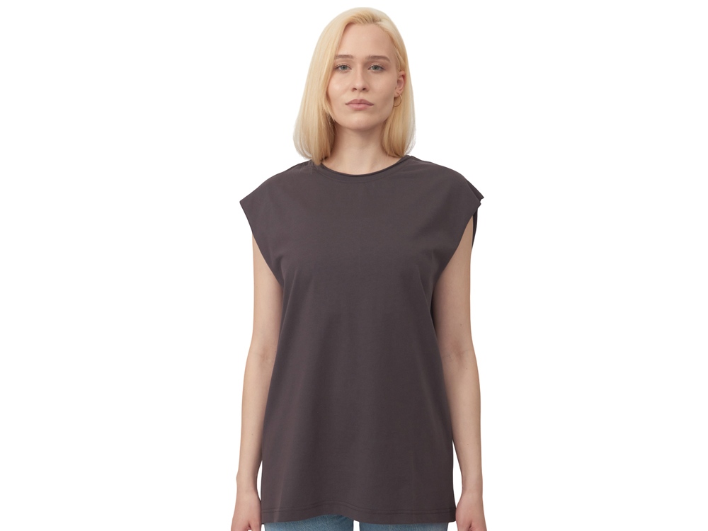 Майка унисекс расширенного силуэта со спущенным плечом, выполнена из плотного джерси 180гр.