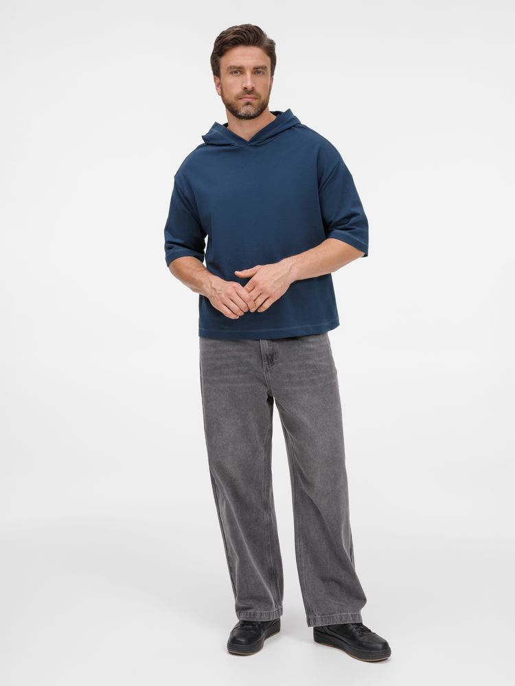 Футболка оверсайз унисекс с капюшоном Neofit, темно-синяя