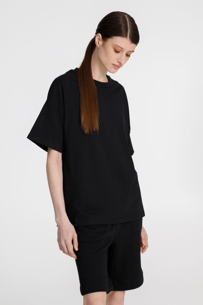 Футболка унисекс прямого кроя со спущенным плечом.- Плотный материал