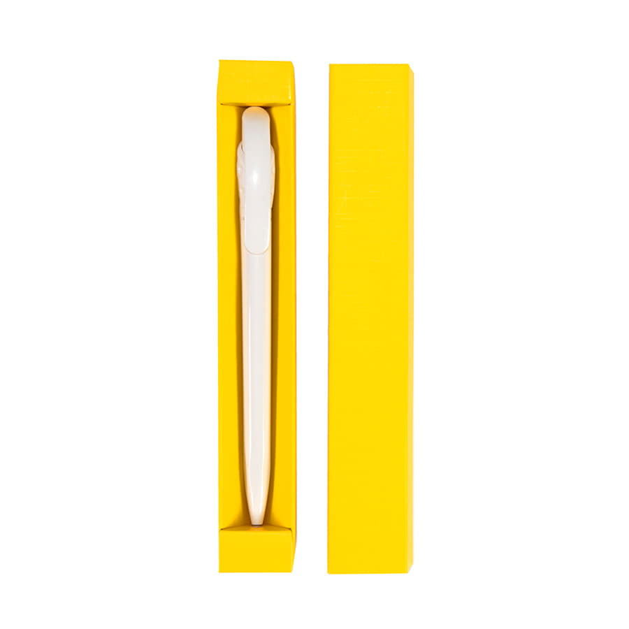 Футляр из дизайнерского картона с тиснением и ламинацией. Подходит для ручек и карандашей длиной до 145 мм и диаметром до 12 мм. Цвет, близкий к Pantone 123C. -