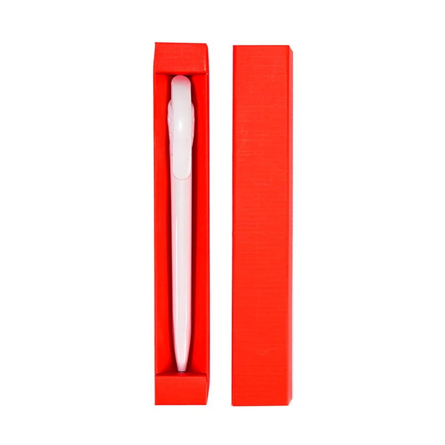 Футляр из дизайнерского картона с тиснением и ламинацией. Подходит для ручек и карандашей длиной до 145 мм и диаметром до 12 мм. Цвет, близкий к Pantone 1797C. -