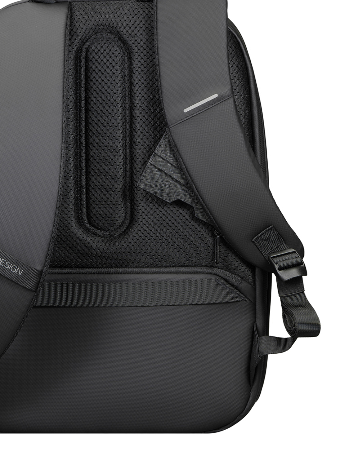 В рюкзаке Bobby Edge идеально сочетаются современный дизайн, комфорт и безопасность. Он подойдет как для повседневного использования, так и для поездок, а ассортимент цветов позволит выбрать подходящий и для женщин, и для мужчин. Конструкция рюкзака легкая, прочная и хорошо держит форму. Водоотталкивающая внешняя поверхность и водонепроницаемая молния надежно защитят вещи от дождя и снега. Внутри — одно основное отделение с продуманной системой организации вещей. Множество карманов позволит взять с собой все, что может понадобиться в путешествии или то, без чего не обойтись каждый день. На спинке и на лямке рюкзака располагаются потайные карманы с RFID-защитой: в них можно положить кошелек, телефон или банковские карты. Bobby Edge открывается на 180º, что значительно упрощает доступ к вещам внутри. Помимо привычной скрытой молнии в этом рюкзаке предусмотрен новый пуллер (собачка молнии). Он изготовлен из металла и оснащен функцией самоблокирования — это обеспечивает дополнительную защиту от карманников. Антикражный рюкзак Bobby Edge от XD Design изготовлен из переработанных пластиковых бутылок. Подходит для ноутбука диагональю до 16’’. Сертифицировано AWARE™. Наличие индикаторных частиц AWARE™ подтверждает, что мы действительно используем переработанные материалы. 2% с продажи каждой вещи, отмеченной сертификатом AWARE™, мы перечисляем в поддержку всемирной организации Water.org.