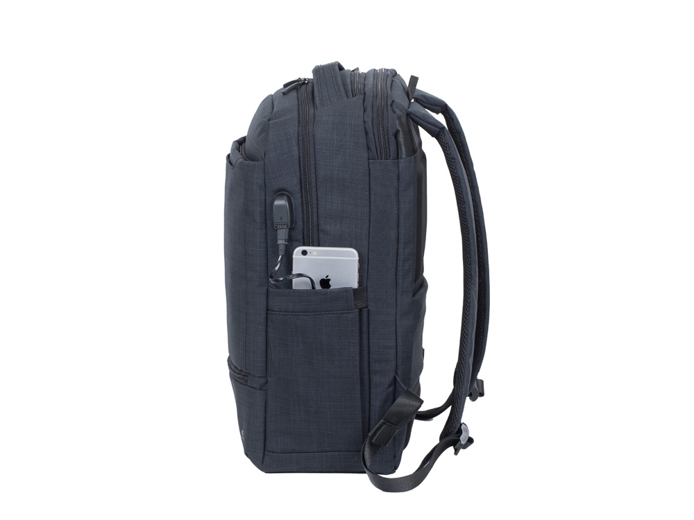 • На боковой стороне рюкзака имеется USB-порт для подключения портативного внешнего аккумулятора.