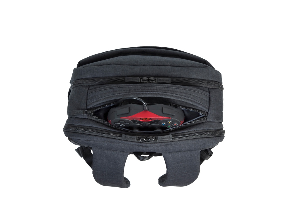 • Просторная секция на молнии для хранения всех необходимых игровых аксессуаров - наушники, мышь, коврик, клавиатура.