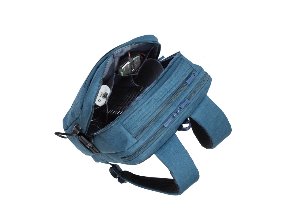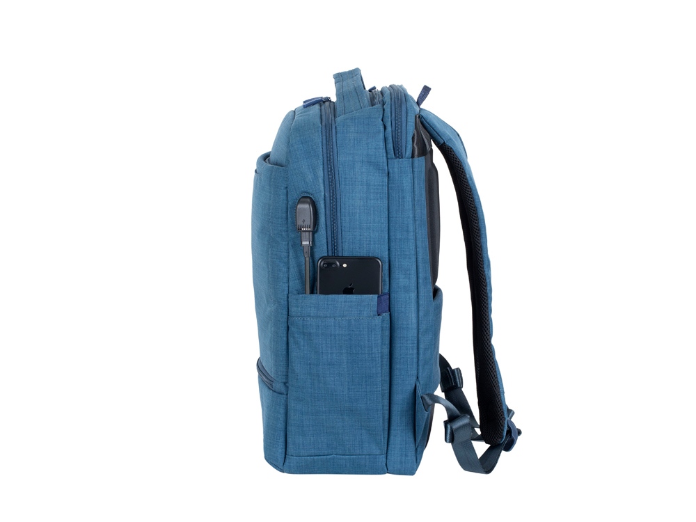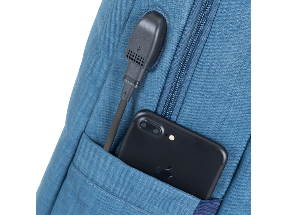 • На боковой стороне рюкзака имеется USB-порт для подключения портативного внешнего аккумулятора.