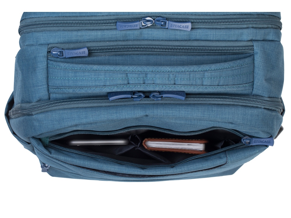 • Два передних кармана на молнии и один на велкро для хранения аксессуаров, зарядного устройства, визитных карт, авторучек, смартфона, документов.
