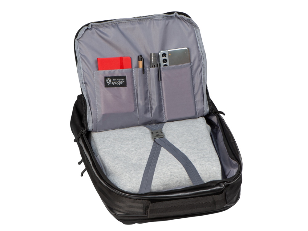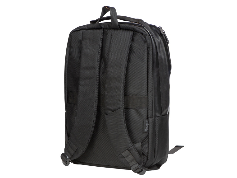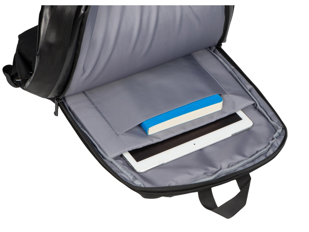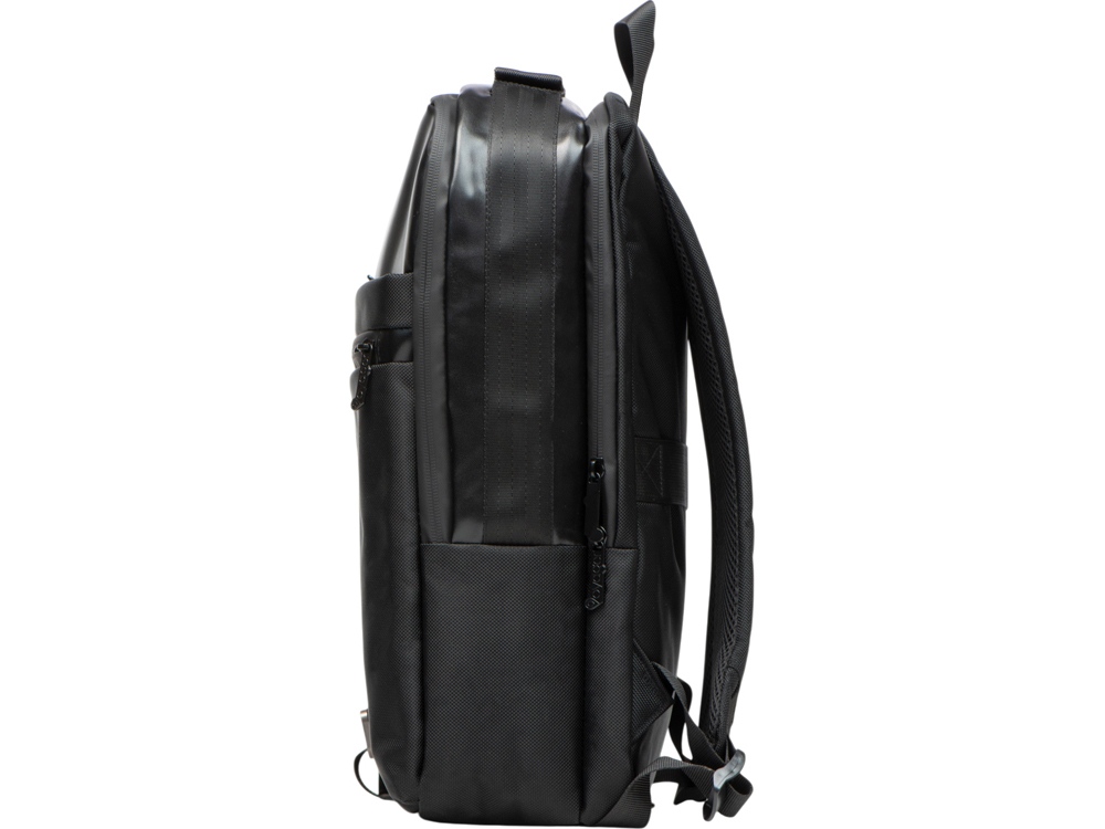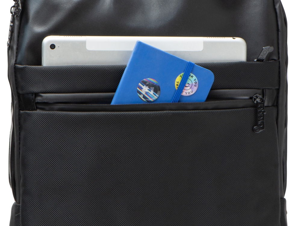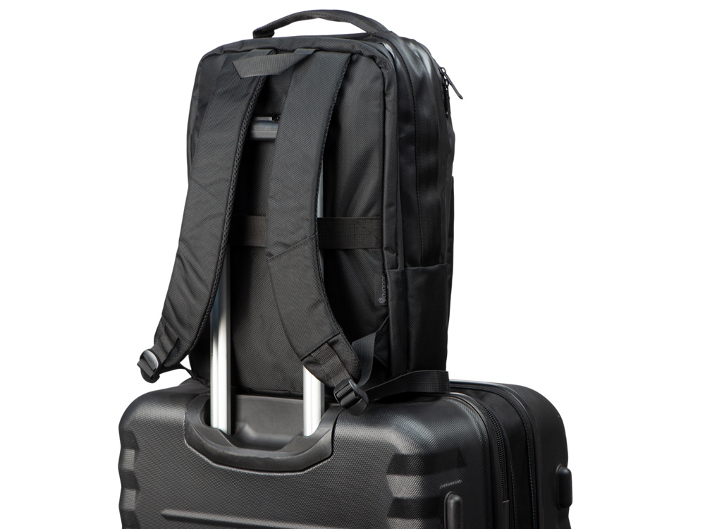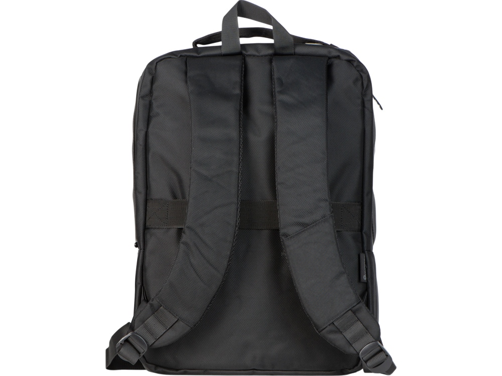 Удобный бизнес-рюкзак для передвижения по городу и деловых поездок состоит из отделения для ноутбука и планшета, большого отделения для одежды с фиксирующими ремнями, 2х наружных карманов на молнии спереди. Конструкция рюкзака продумана до мелочей: внутри большого отделения расположен органайзер для гаджетов и проводов, на спинке есть ремень для крепления на ручку чемодана и регулирующиеся по длине лямки, на лямке - карман для карт или ключей. Водостойкий материал и молнии. В комплекте мешок из спанбонда для хранения и металлический шильд под ваш логотип. -