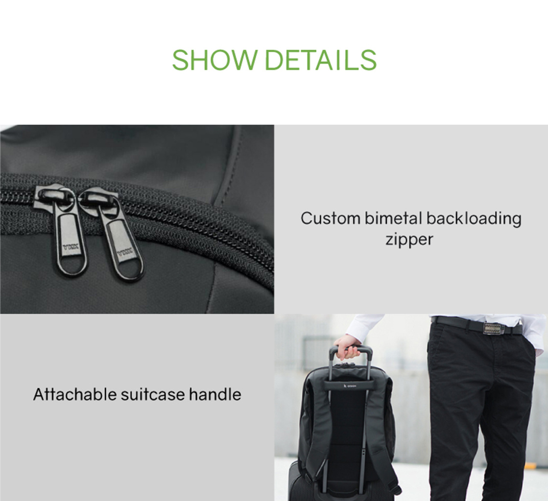 • Двойная укрепленная молния YKK с фиксацией кодового замка TSA007 с функцией таможенного досмотра