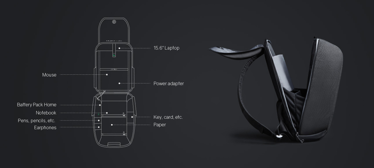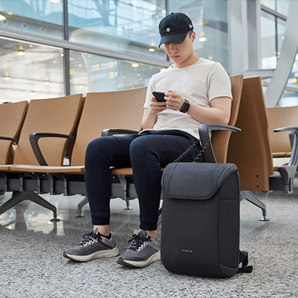 Если необходимо достать какие-то мелочи, достаточно зафиксировать липучки для вертикального открытия на 30°, а для того, чтобы аккуратно уложить в рюкзак много различных предметов, просто положите его и раскройте на 180°. Дополнительно в основном отделении расположены еще 5 карманов различного функционала, в один из которых размером 16х10 см можно поместить powerbank, т к в него приходит USB-кабель, соединенный с портом на внешней стороне рюкзака для легкого подключения к смартфону. Это оригинальная запатентованная система зарядки K EasyCharging 3.0 нового поколения с помощью USB-порта, расположенного в лямке рюкзака, и кабеля, идущего к powerbank, что делает мобильную зарядку более удобной.