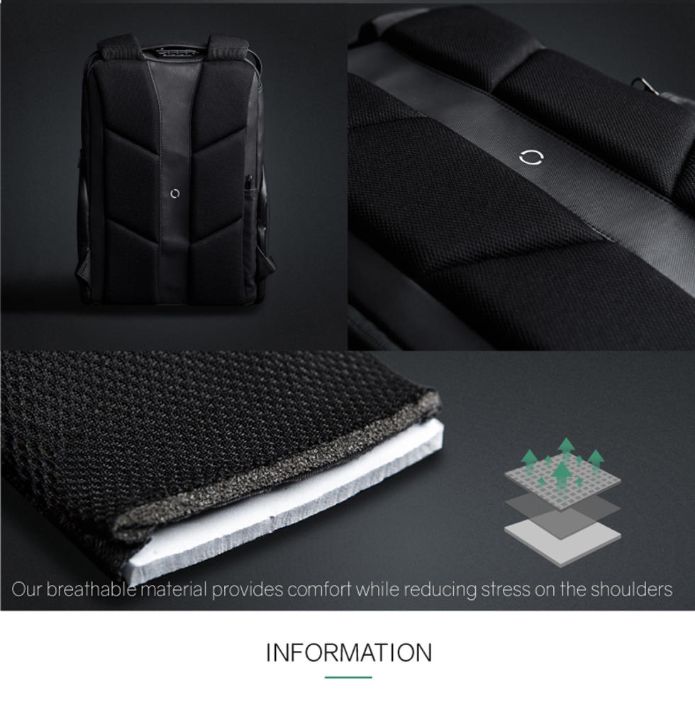 Детально продуманная организация отделений позволяет грамотно распределить вес. Самые тяжелые предметы располагаются ближе к спине. Ноутбук надежно фиксируется и не перемещается при ходьбе. Внутри рюкзака есть 5 дополнительных карманов на молниях. Специальная анатомическая конструкция вентилируемых мягких спинки и лямок и дополнительная поперечная лямка на магнитной застежке снижает нагрузку на плечи и спину, вес рюкзака воспринимается на 20-25% легче, чем при использовании стандартных моделей рюкзаков.