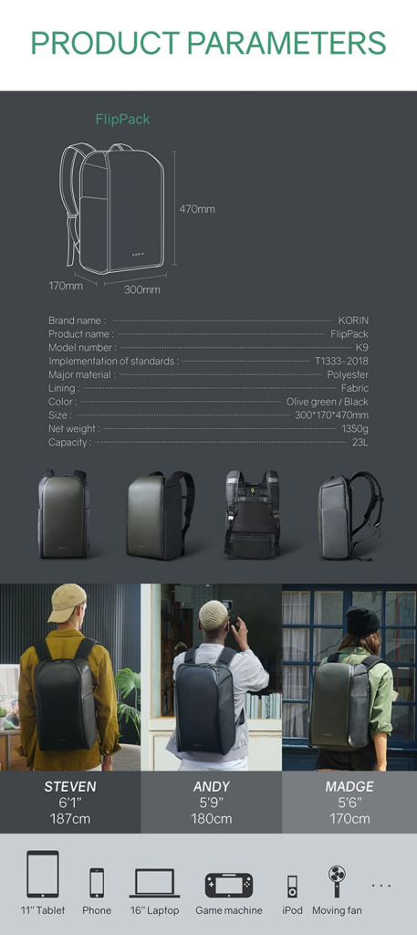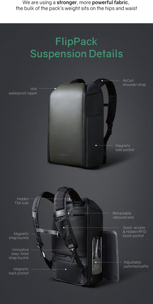 Рюкзак KORIN FlipPack 47х30х17 см, черный